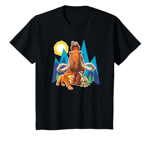 Ice Age Manfred Diego Sid and Scrat Cutout Mountains T-Shirt, Youth, Black, Medium