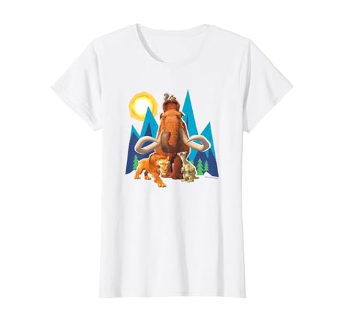 Ice Age Manfred Diego Sid and Scrat Cutout Mountains T-Shirt, Women, White, X-Small