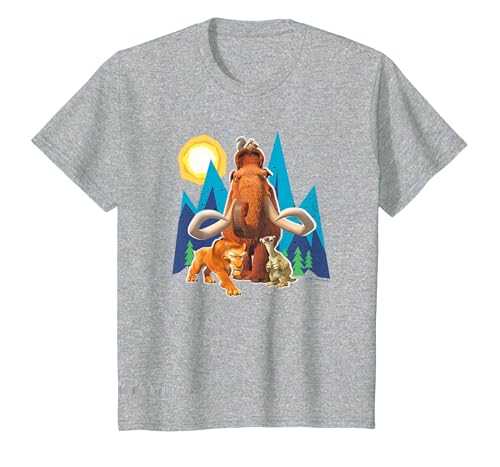 Ice Age Manfred Diego Sid and Scrat Cutout Mountains T-Shirt, Youth, Heather Grey, 4T
