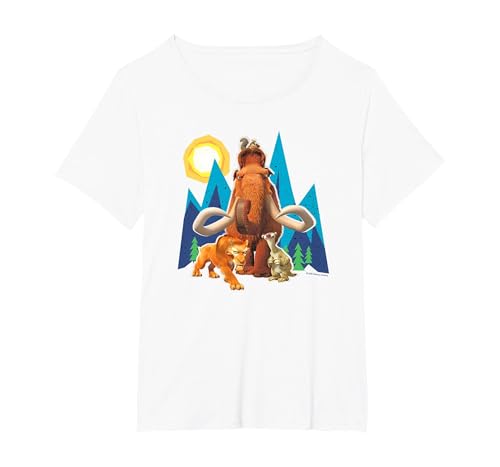 Ice Age Manfred Diego Sid and Scrat Cutout Mountains T-Shirt, Women's Plus, White, 4X