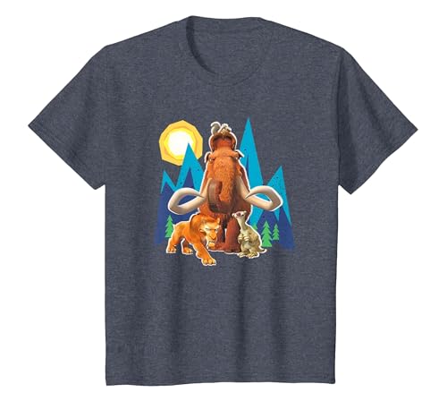 Ice Age Manfred Diego Sid and Scrat Cutout Mountains T-Shirt, Youth, Navy Blue, Medium