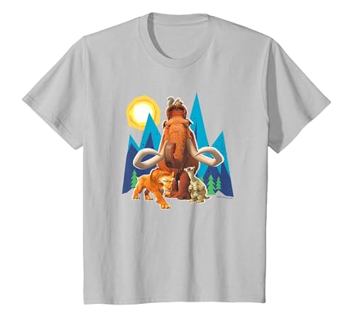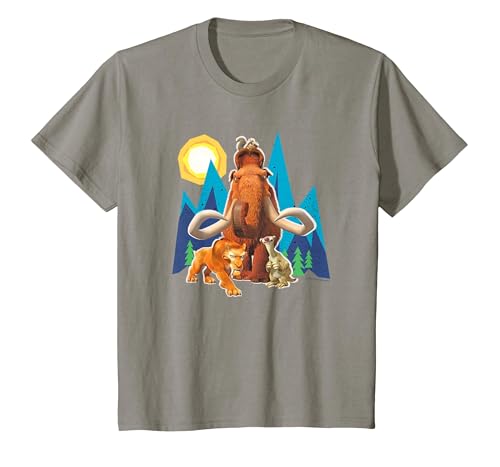 Ice Age Manfred Diego Sid and Scrat Cutout Mountains T-Shirt, Youth, Slate Grey, Medium