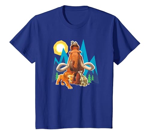 Ice Age Manfred Diego Sid and Scrat Cutout Mountains T-Shirt, Youth, Royal Blue, Medium