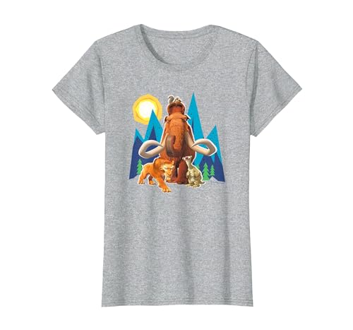 Ice Age Manfred Diego Sid and Scrat Cutout Mountains T-Shirt, Women, Silver Grey, Medium