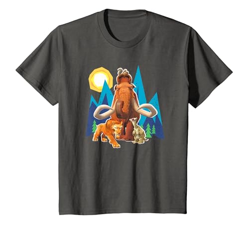 Ice Age Manfred Diego Sid and Scrat Cutout Mountains T-Shirt, Youth, Asphalt Grey, Large