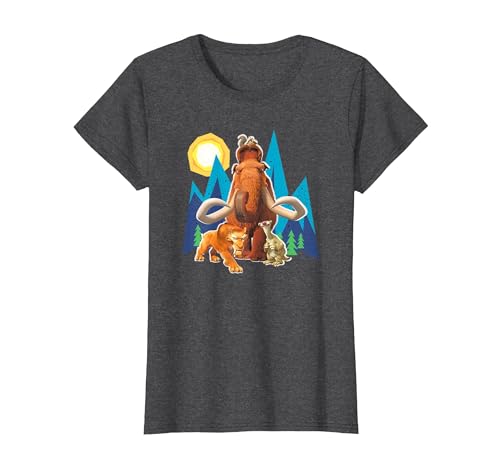 Ice Age Manfred Diego Sid and Scrat Cutout Mountains T-Shirt, Women, Dark Heather Grey, Large