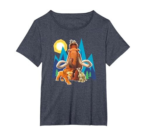 Ice Age Manfred Diego Sid and Scrat Cutout Mountains T-Shirt, Women's Plus, Navy Blue, 6X