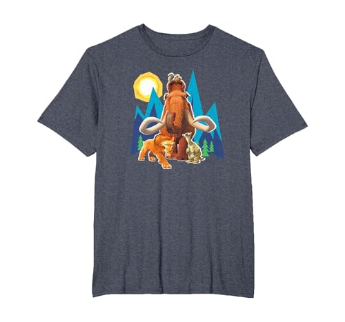 Ice Age Manfred Diego Sid and Scrat Cutout Mountains T-Shirt, Men, Heather Blue, Large