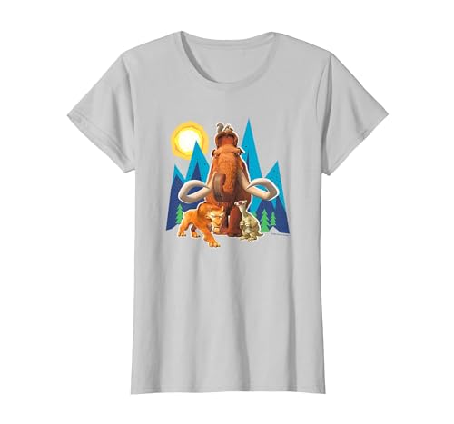 Ice Age Manfred Diego Sid and Scrat Cutout Mountains T-Shirt, Women, Silver Grey, X-Small