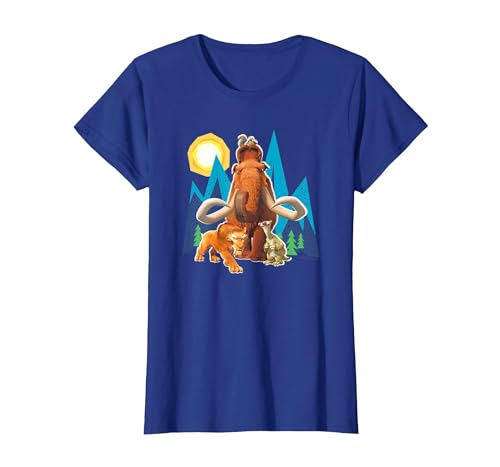 Ice Age Manfred Diego Sid and Scrat Cutout Mountains T-Shirt, Women, Royal Blue, Medium