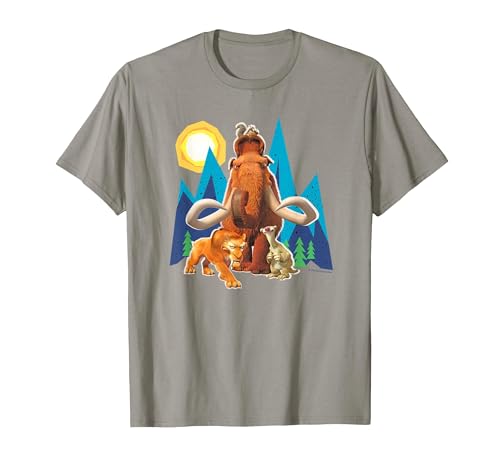 Ice Age Manfred Diego Sid and Scrat Cutout Mountains T-Shirt, Men, Asphalt Grey, Large