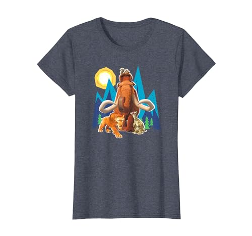 Ice Age Manfred Diego Sid and Scrat Cutout Mountains T-Shirt, Women, Heather Blue, X-Small