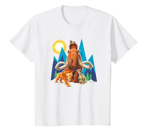 Ice Age Manfred Diego Sid and Scrat Cutout Mountains T-Shirt, Youth, White, Medium