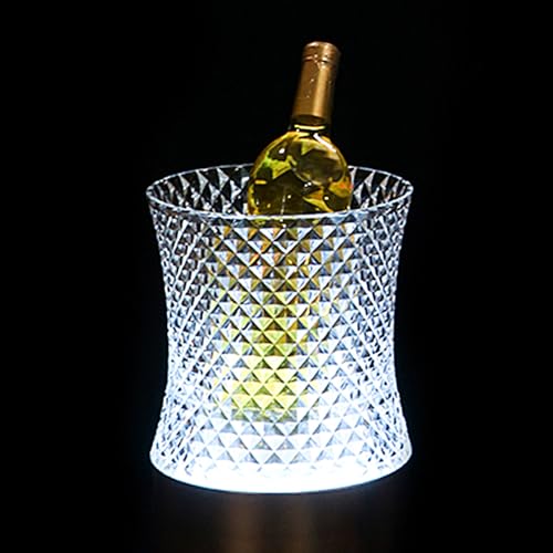 Colorful LED Lighted Ice Bucket Acrylic Champagne Cooler ABS Material Base Bars Decor and Accessories for Private Dinners, Holiday Parties, Clubs, Weddings(White,20 * 20 * 20cm)