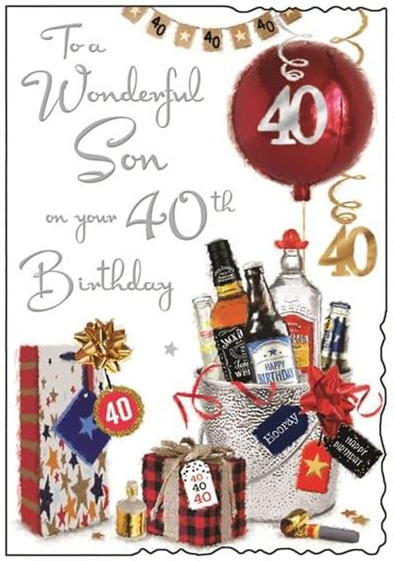 Jonny Javelin Son 40Th Birthday Card - Ice Bucket and Balloon Silver Foil 9X6.25