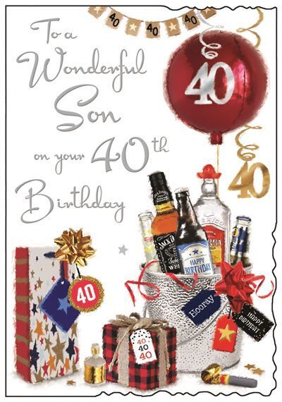 Jonny Javelin Son 40th Birthday Card - Ice Bucket and Balloon Silver Foil 9x6.25
