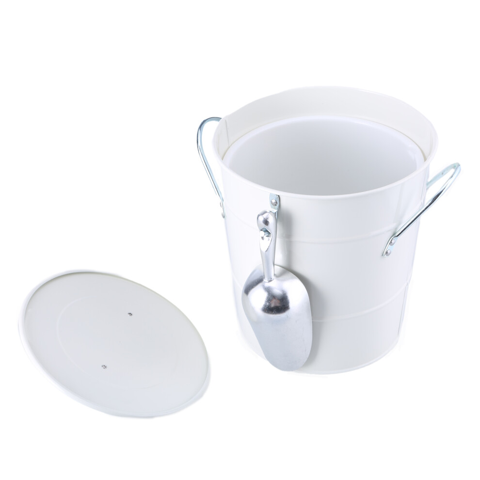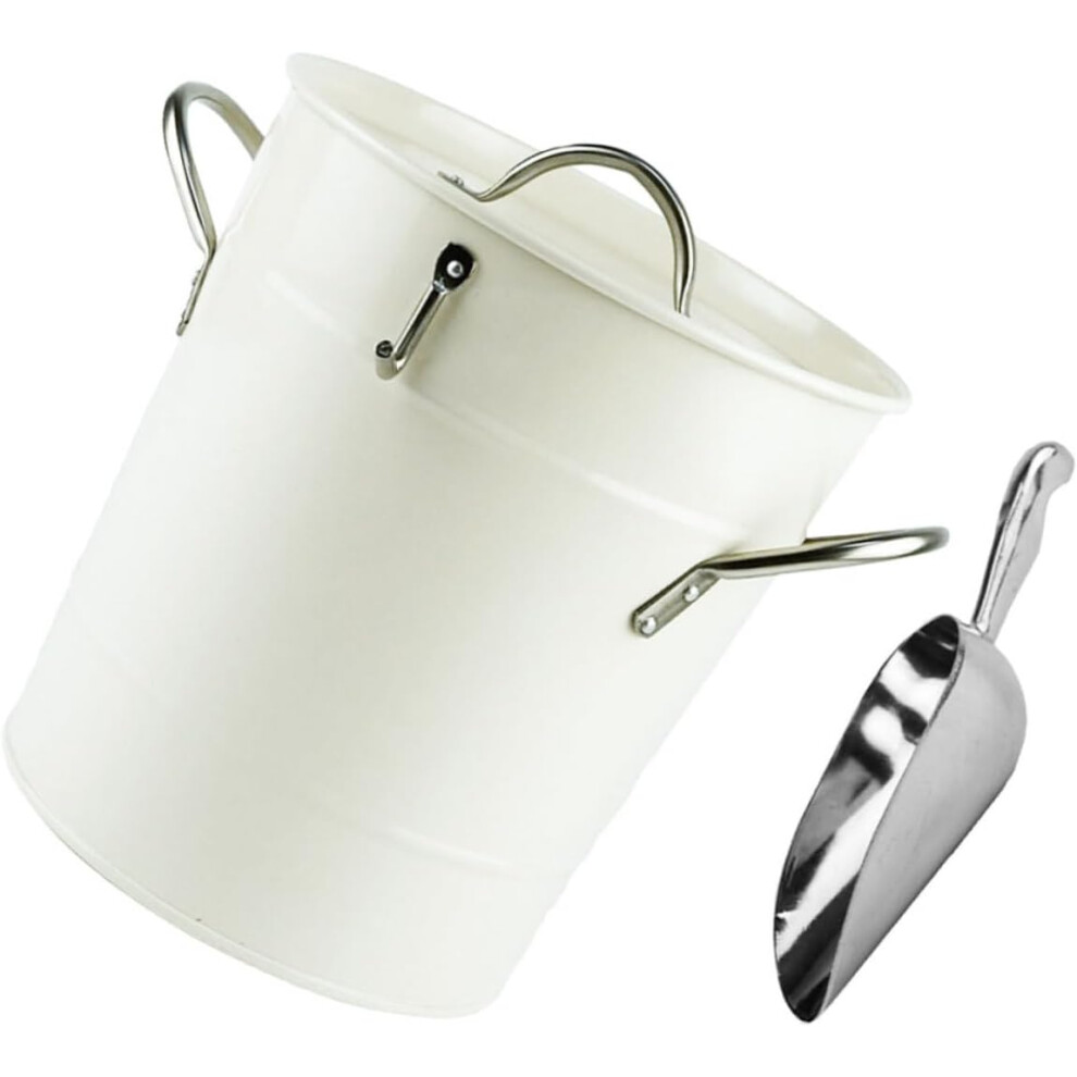 Insulated Ice and Wine Bucket with Ice Scoop High Capacity Ice Box for Parties Metal Beer Bucket White 2 in 1