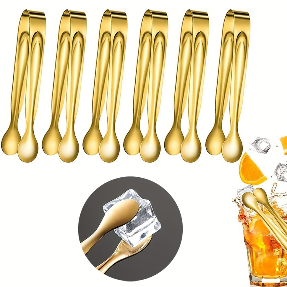 Mini Tongs, Mini Serving Tongs, Gold 6 Pack for Serving Coffee Bar, Tea or Desserts, Party, Sugar and Ice Bucket (11.3 x 1.6 cm/1.6 cm)