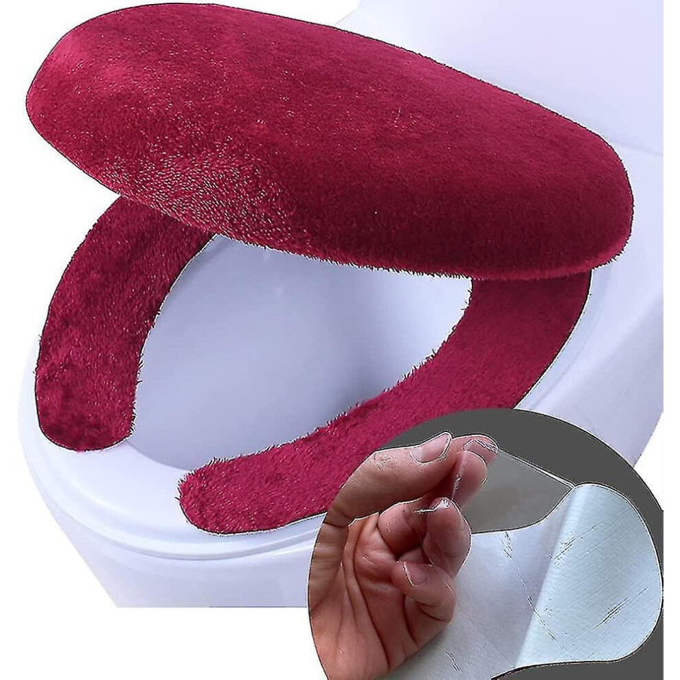 (As show, One size) Toilet Seat Cover Cushion Two-piece Washable Ice Silk Velvet Bathroom Toilet Accessory Set- Toilet Seat Cover And Toilet Lid Cover