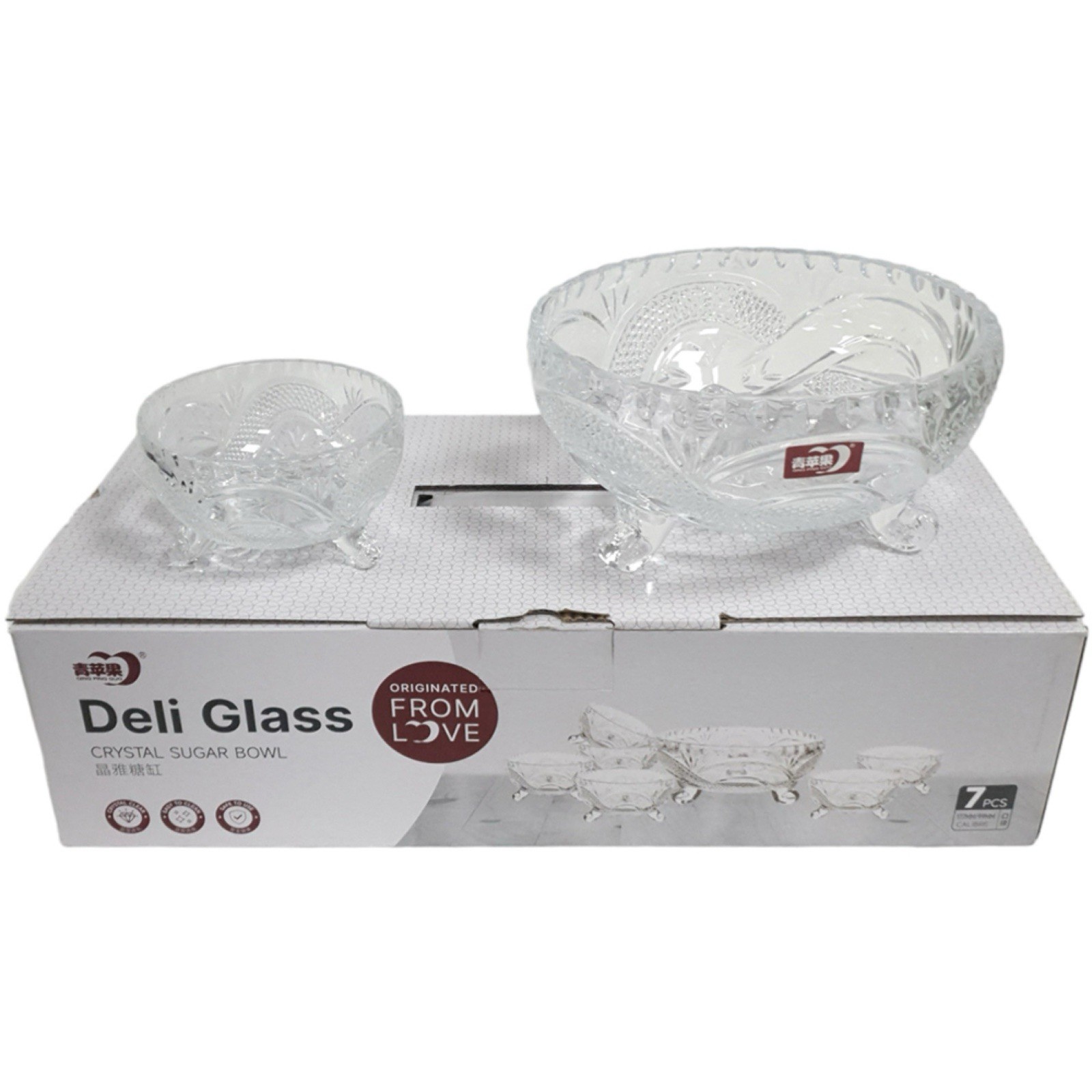 7 Piece Glass Bowls Set Fruit Trifle Salad Pudding Dessert Ice Cream Bowls Set