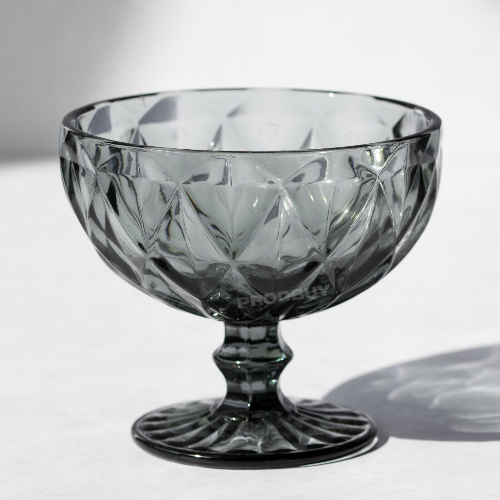 Set of 2 Grey Thick Glass Sundae Dishes Vintage Ice Cream Dessert Glasses Bowls