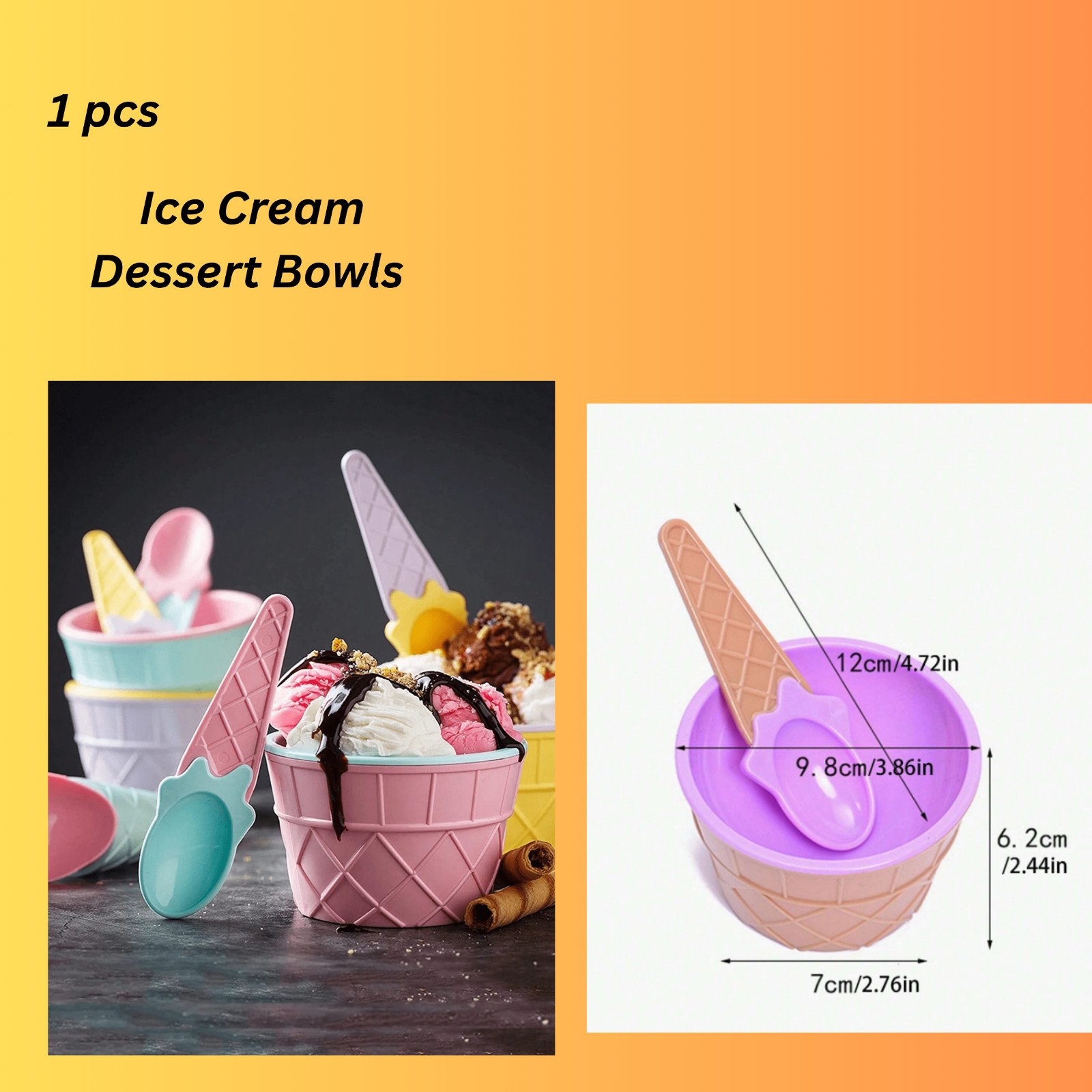 Ice Cream Dessert Bowls & Matching Spoons Wafer Dessert Bundle