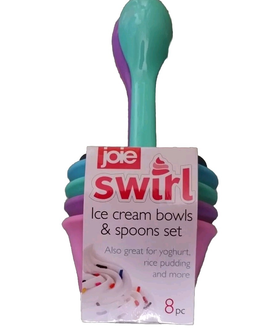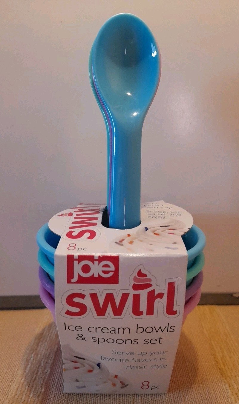 Joie Swirl Ice Cream Bowls & Spoon Set 8pc New Ice Cream Cups & Spoons Set