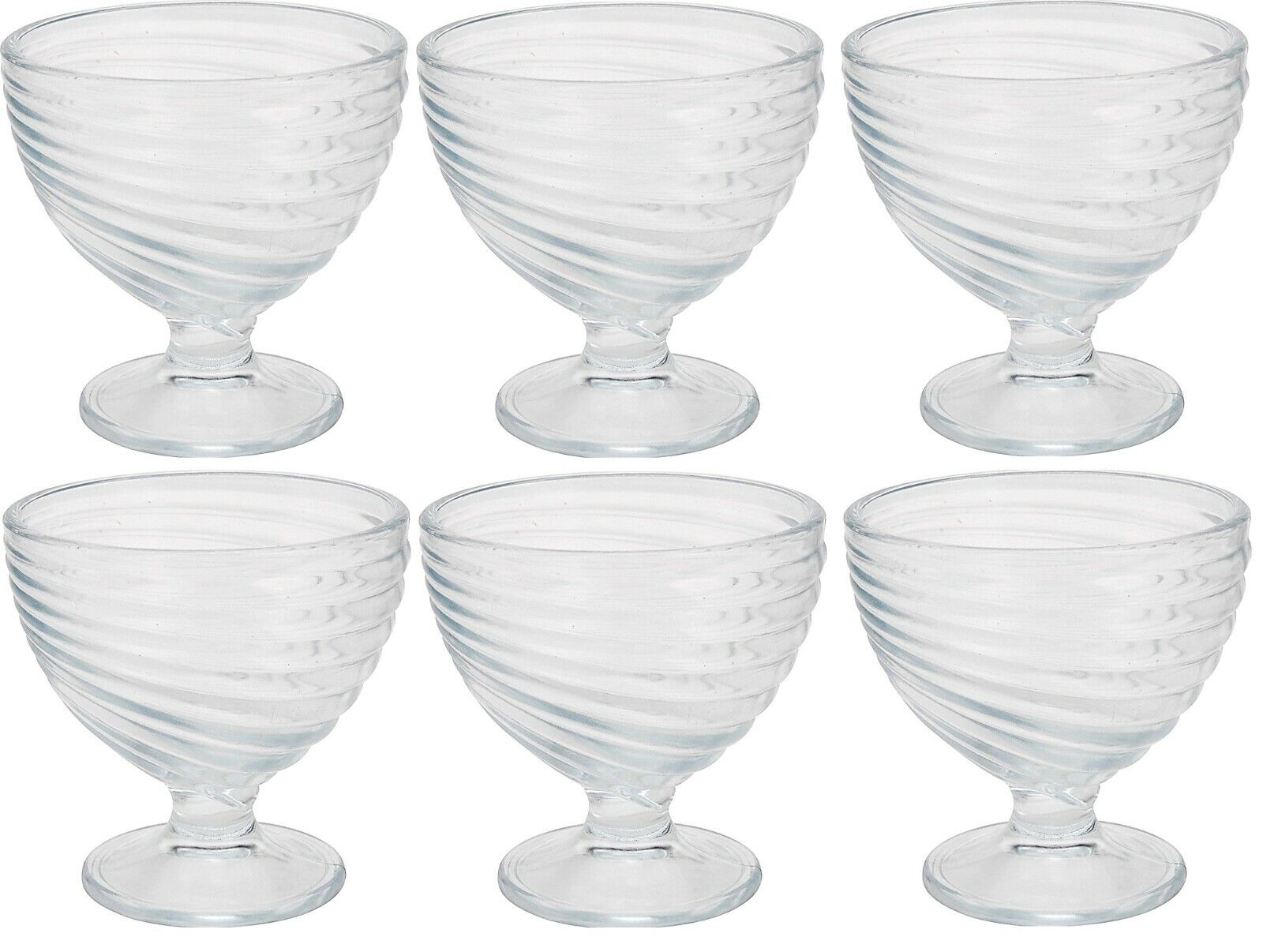 Set of 6 Large Glass Ice Cream Bowls Sundae Dishes Clear Glass With Swirl Patter