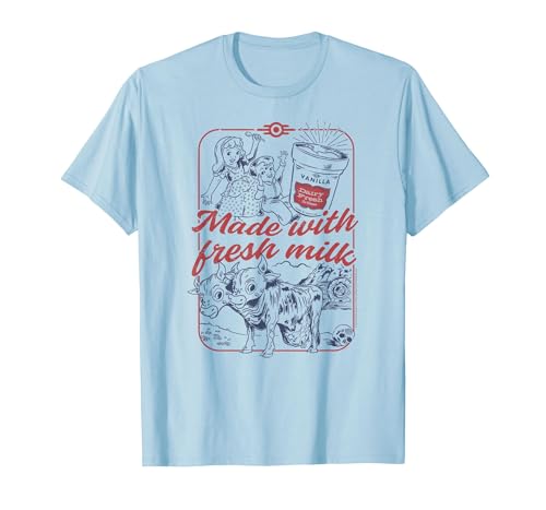 Fallout Retro Ice Cream Made with Fresh Milk TV Show T-Shirt, Women, Baby Blue, X-Large