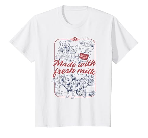 Fallout Retro Ice Cream Made with Fresh Milk TV Show T-Shirt, Youth, White, X-Small