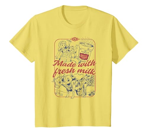 Fallout Retro Ice Cream Made with Fresh Milk TV Show T-Shirt, Youth, Lemon Yellow, Small