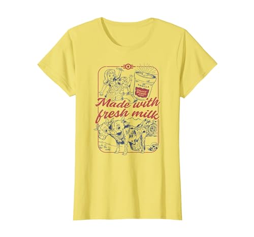 Fallout Retro Ice Cream Made with Fresh Milk TV Show T-Shirt, Women, Lemon Yellow, Small