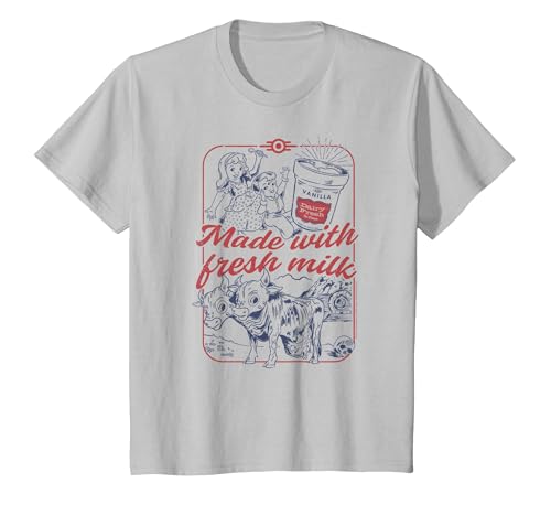 Fallout Retro Ice Cream Made with Fresh Milk TV Show T-Shirt, Youth, Silver Grey, X-Small