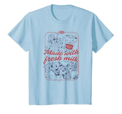 Fallout Retro Ice Cream Made with Fresh Milk TV Show T-Shirt, Youth, Baby Blue, Large