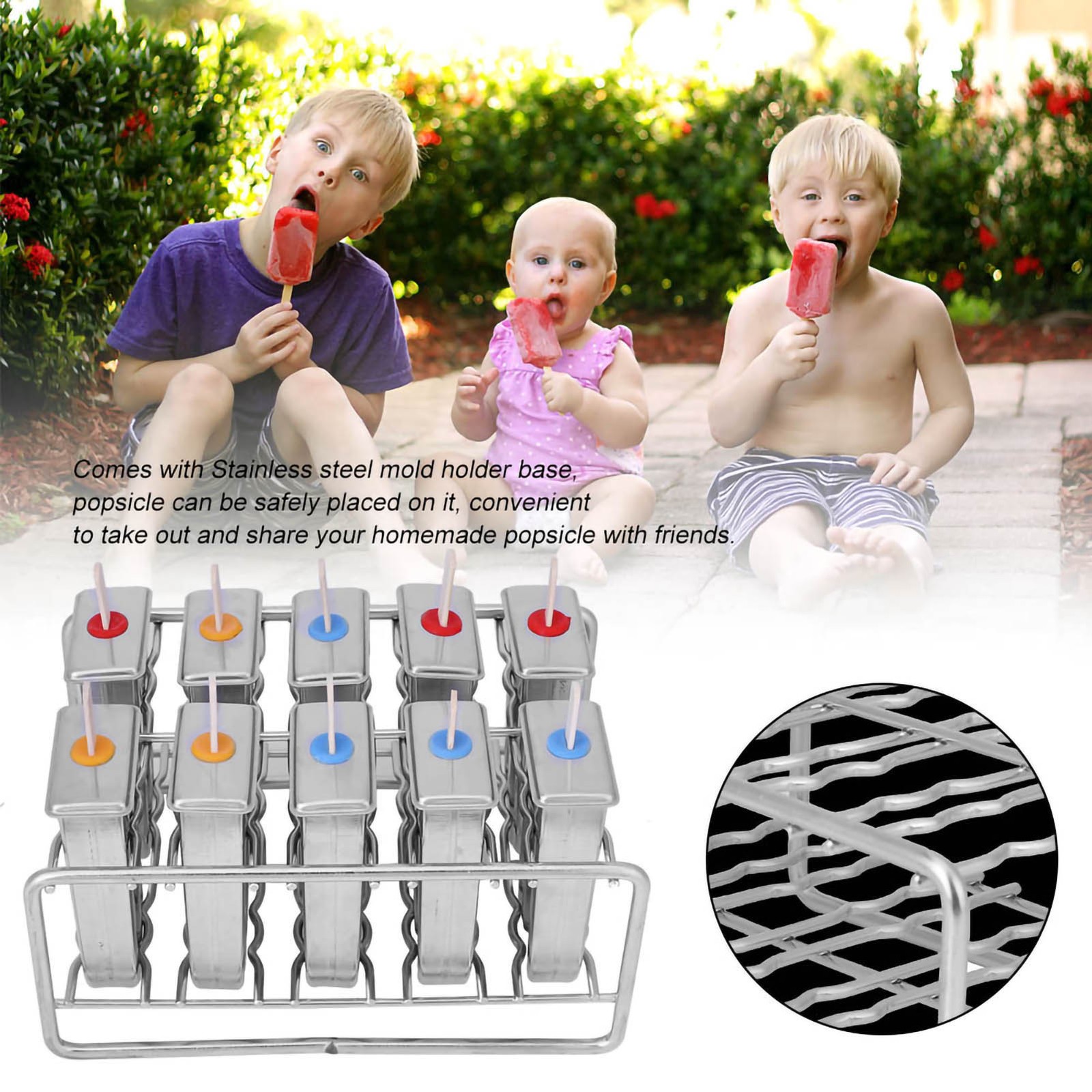 10 Molds Stainless Steel Ice Cream Pop Mould Lolly Popsicle 100Pcs Stick H