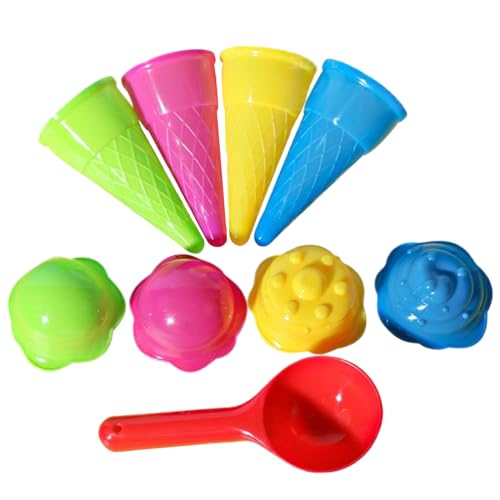 Xweptuy 9PCS/Set Beach Toys, Plastic Ice Cream Play Set Includes Ice Cream Cones, Scoop and Lid, Toy, Sand Toys for Children Toddlers, Random Color