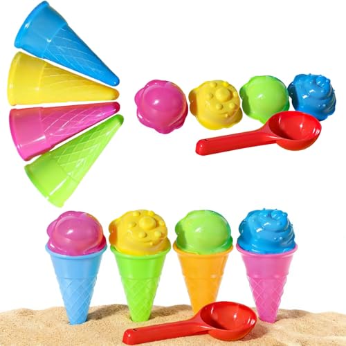 Tsawntd 10Pcs Beach Toys, Colorful Plastic Sand Toys, Educational and Fun Ice Cream Cone & Scoop Molds Set for Kids, Dessert Lovers, summer