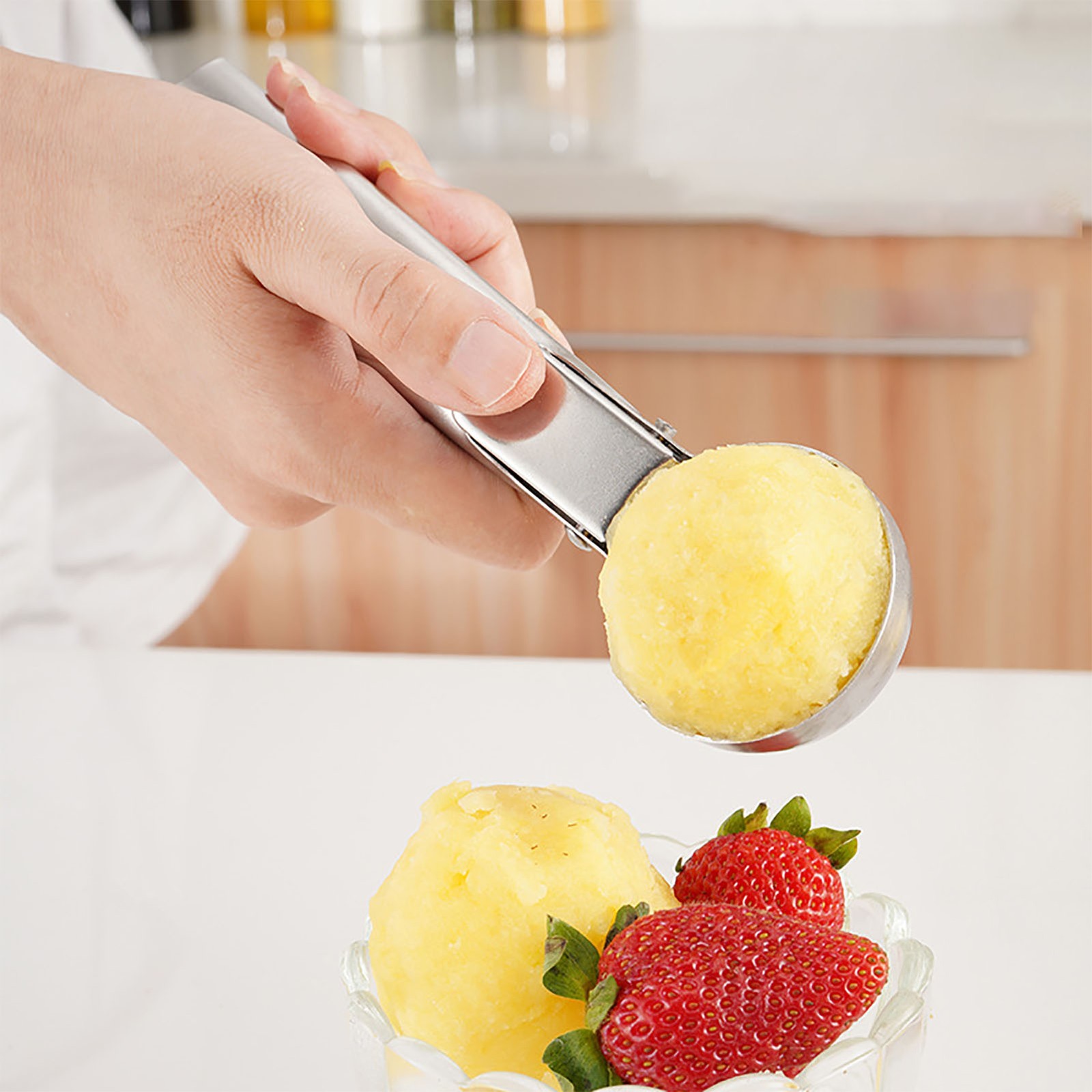 MXRGUMVI Ice Cream Scoop Melon Ball Shape Scoops Fruit Trigger Spoon Cookies Dough Scooper Meat Ball Maker Kitchen Dessert Tool