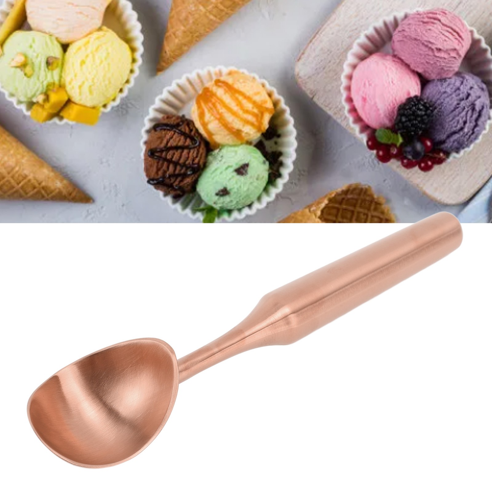 (Rose Gold)304 Stainless Steel Ice Cream Scoop Long Handle Cookie Dough Scooper