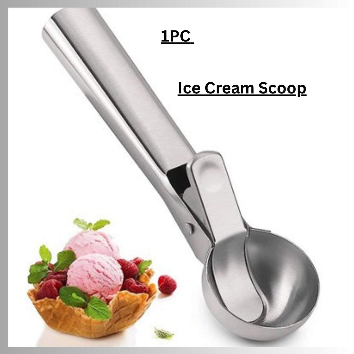 ¸As AU (Silver)Ice Cream Scoop Stainless Steel Scooper With Comfortable Handle