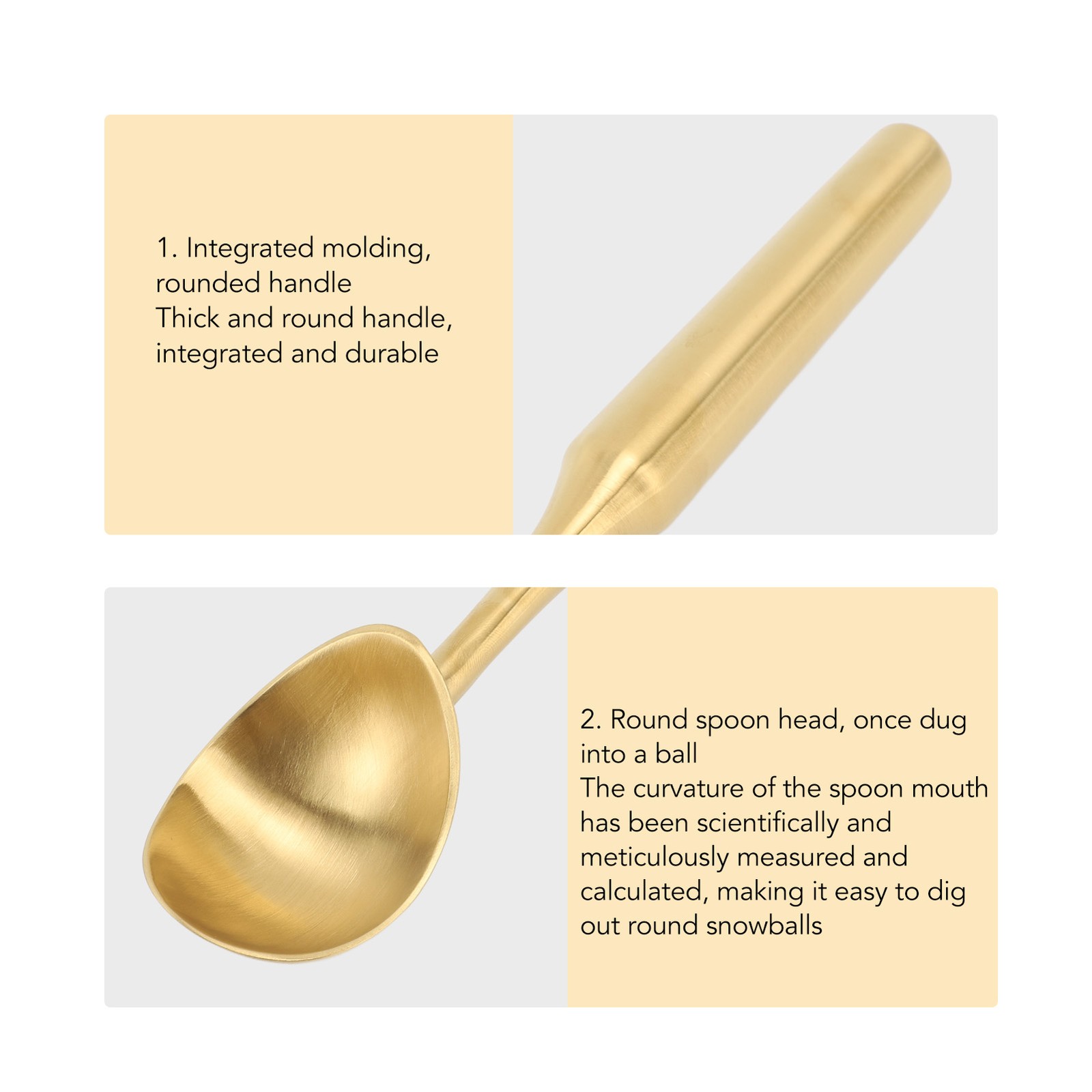 (Gold)304 Stainless Steel Ice Cream Scoop Long Handle Cookie Dough Scooper For