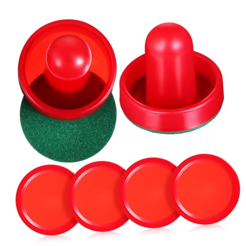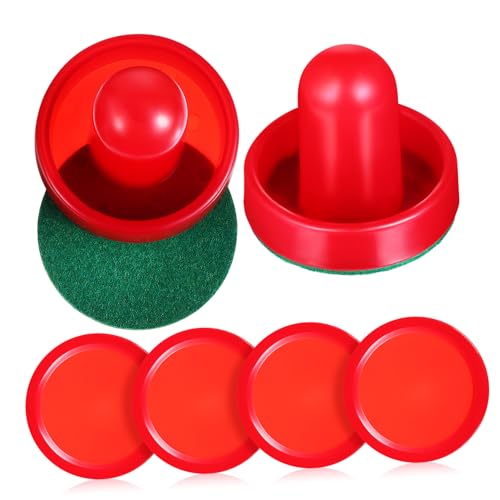 BESTonZON Air Hockey Pucks Red Pushers with Felt Pads Replacement Ice Hockey Parts for Tabletop Game Family Fun Accessories