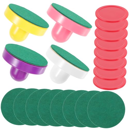 SUPVOX 2 Sets Portable Air Hockey Pucks and Handles Wear-resistant Ice Hockey Accessories with Felt Pads for Table Game Replacement Parts