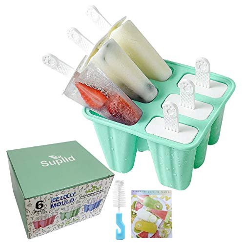 Ice Lolly Mould 6 Pieces Reusable Silicone Popsicle Mold Easy to Remove Ice Lolly Maker - BPA Free Ice Pop Mould (Green)