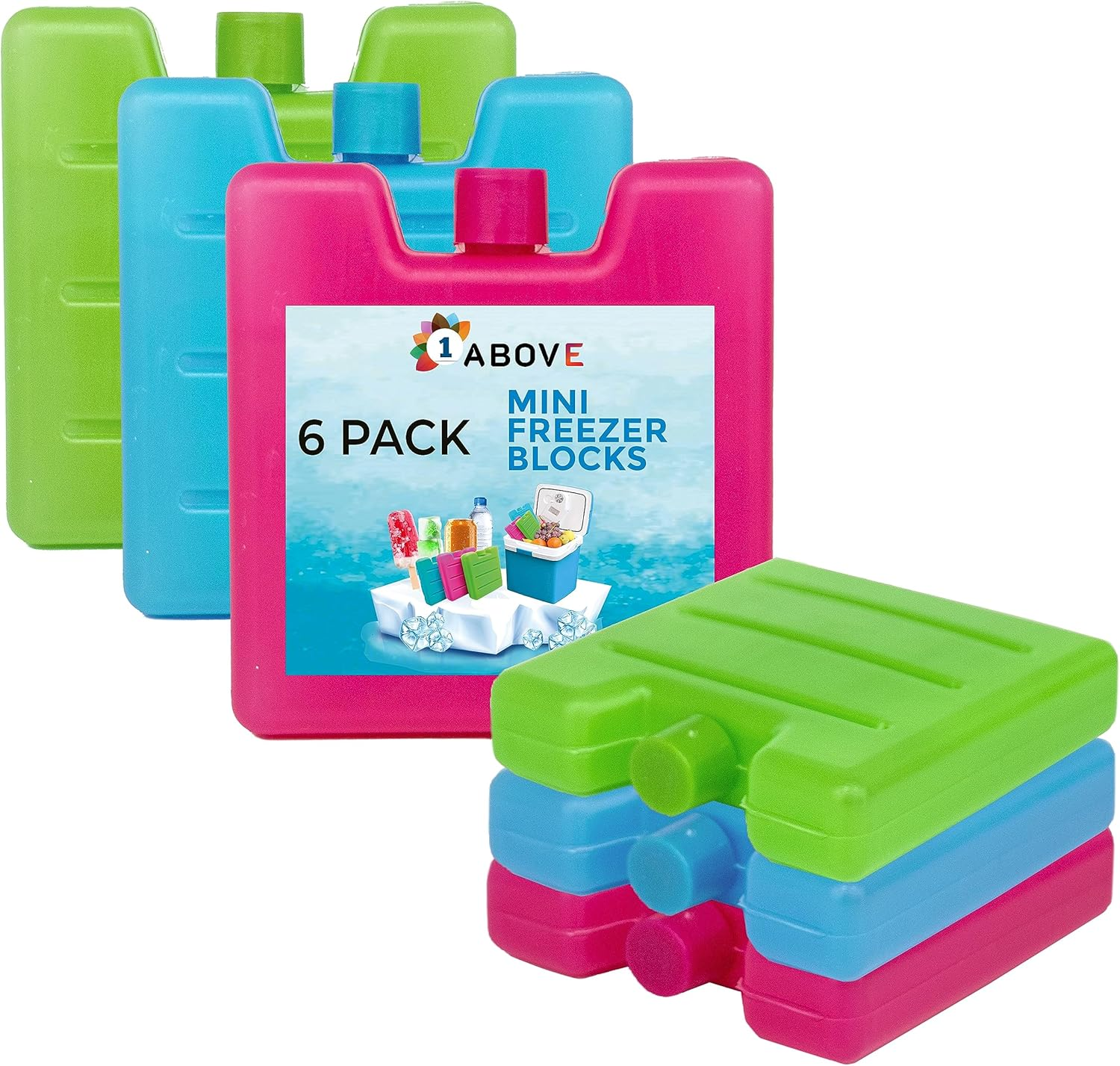 1Above Mini Freezer Blocks, Long Lasting Reusable Family Pack Ice Block Pack for Cool Box, Cooler Bag to Keeps Drink, Food, Lunchboxes Cool…