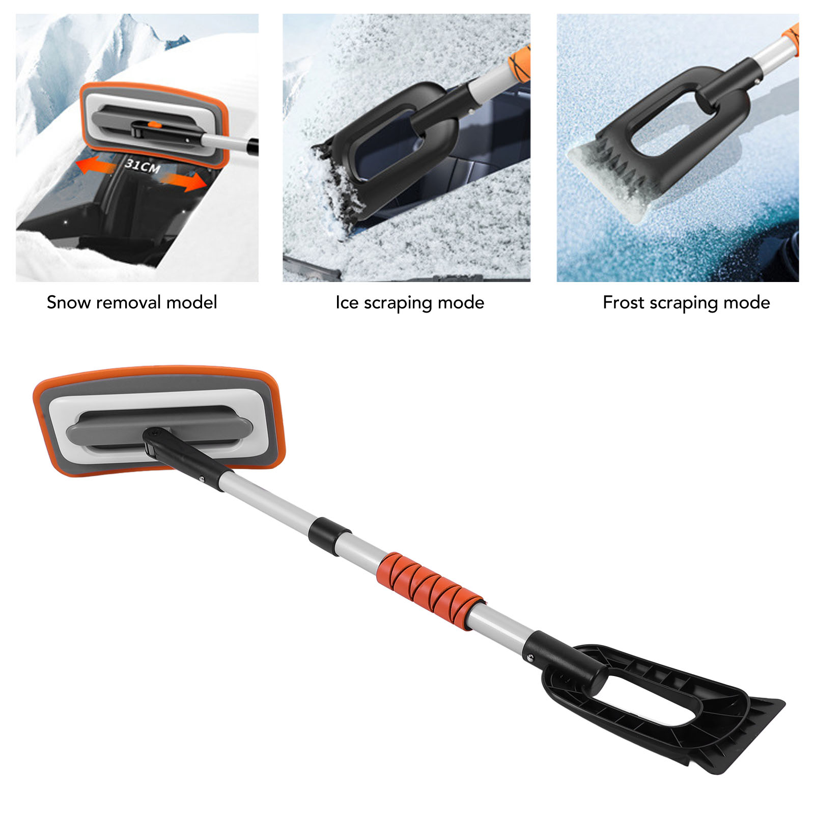 GreenZech 102cm Multifunction Retractable Snow Brush with Ice Scraper Garden Car Removaling Shovel Tool