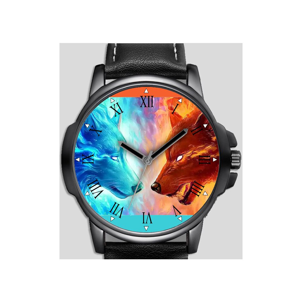 Fire vs Ice wolf art Unique Wrist Watch FAST UK