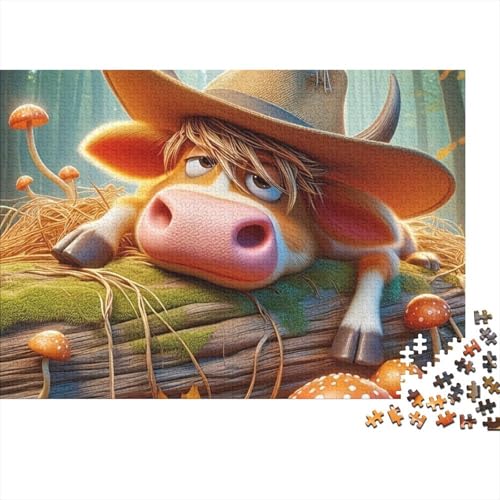 Cattle 1000 Piece Cowboy Hat Cow Sturdy Cardboard Jigsaw Puzzle for Adults Birthday Party Staycation Entertainment Casual Gamers Social Icebreaker 52x38cm/1000pcs