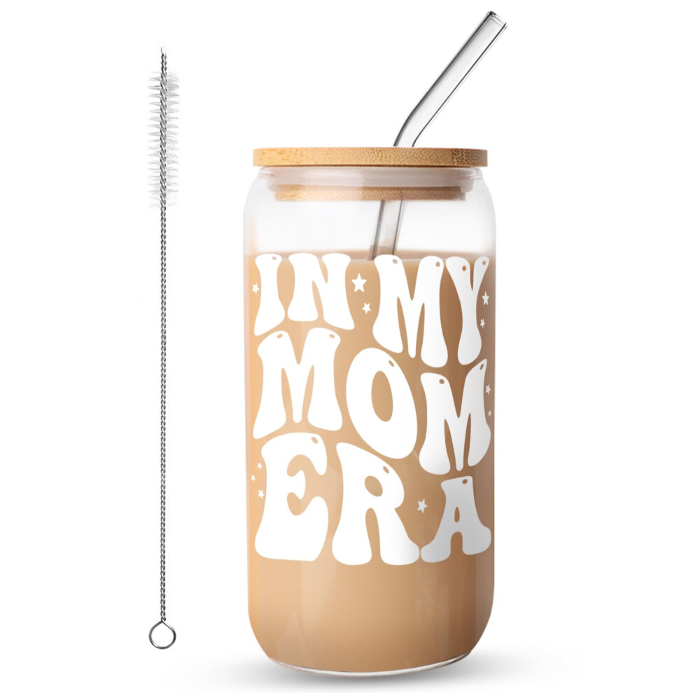 FIDWALL Iced Coffee Cup,Glass Cups with Lids and Straws,Mum Birthday Gifts,New Mum Gifts,Hot and Cold Drinks,Durable Glass (MOM)