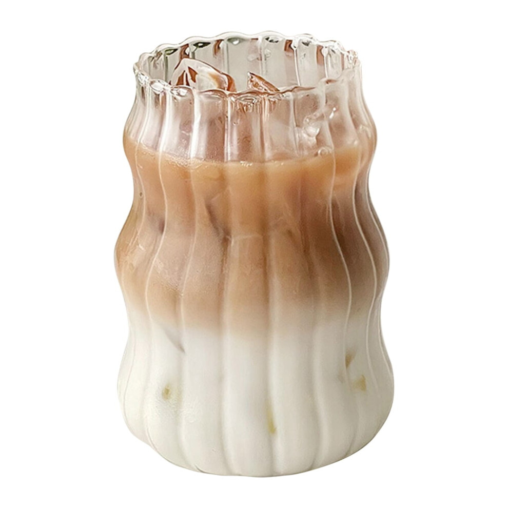 (Khaki) Wavy Glass Cup,300ml Clear Wine Mug, Milk Juice Cup - Aesthetic Cocktail Beer Glasses, Drinking Glassware, Iced Coffee Glass for Champagne Coc